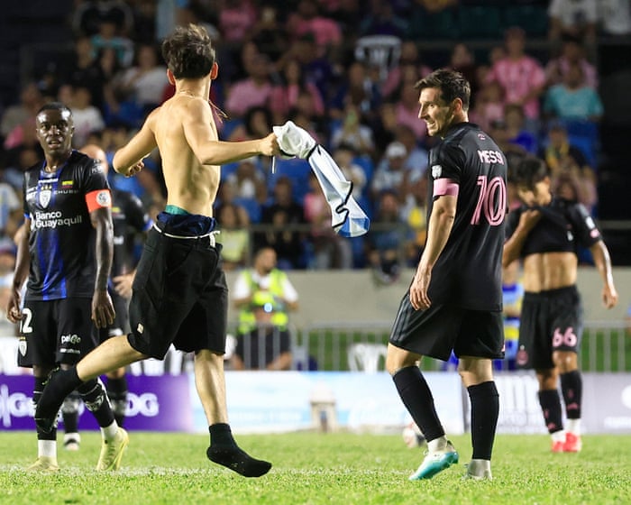 Lionel Messi was briefly tackled to the ground by a pitch invader and a security guard in a midweek, early-season friendly on Thursday evening in Bayamón, Puerto Rico.